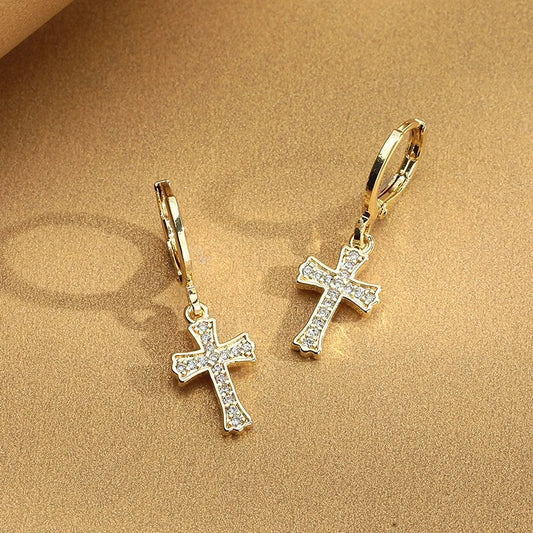 14k Gold Plated Micro inlaid Zircon Hoop Cross Earrings