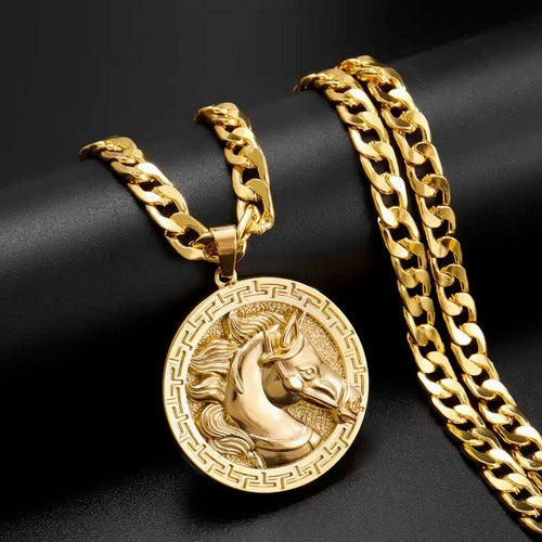 18K Gold Plated Stainless Steel Horse Necklace