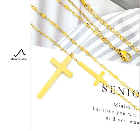 18K Gold Filled Double Layered Chain Stainless Steel Triple Cross Necklace