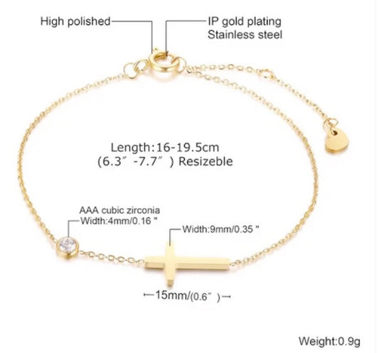 18k Gold Plated Cross Cubic Zircon Zirconia Bracelet