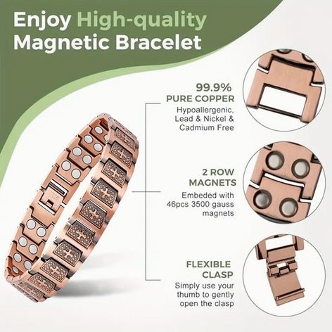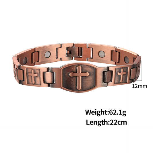 Copper Bracelet, Retro Cross Design With Magnetic Therapy