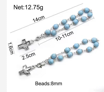Dove Of Peace On Cross Turquoise Bracelet- Length Adjustable