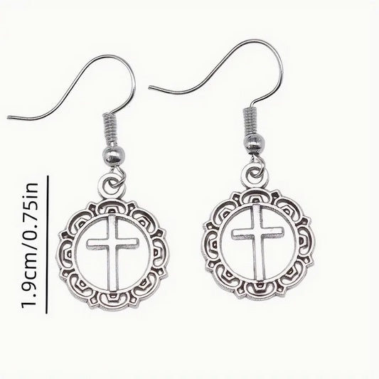Vintage-Inspired Cross Faith Drop Earrings