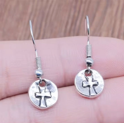 Tiny Round Cross Earrings