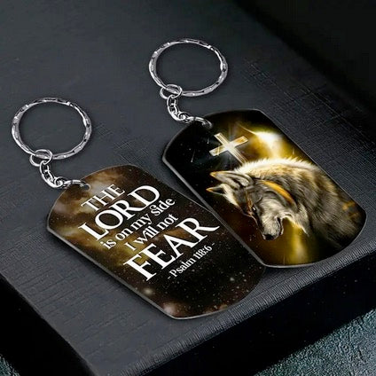 Wolf And Cross Keychain With Bible Verse