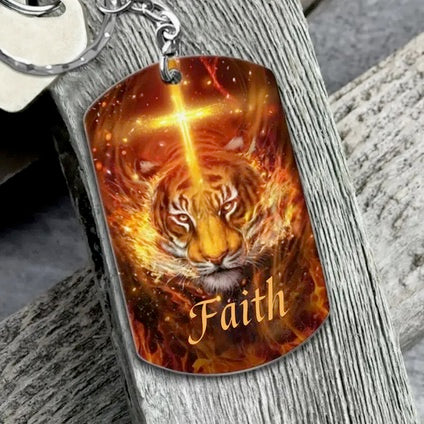 Tiger And Faith Cross With Bible Verse Keychain