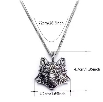 Celtic Wolf Long Chain Pendant Necklace for Men