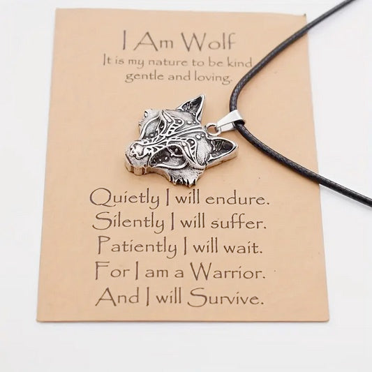 Nordic Ancient Mythology Viking Wolf Head Necklace On Credo Card